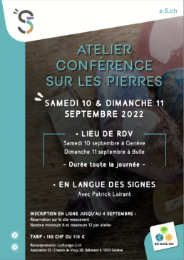 Retrouvez-nous le samedi 10 septembre toute la journée à Genève ou le dimanche 11 septembre toute la journée à Bulle (Fribourg – COMPLET) pour participer à l’atelier – conférence des pierres du bien-être. L’atelier à Bulle est organisé en partenariat avec l’AFLS (Association Fribourgeoise de la Langue des Signes).