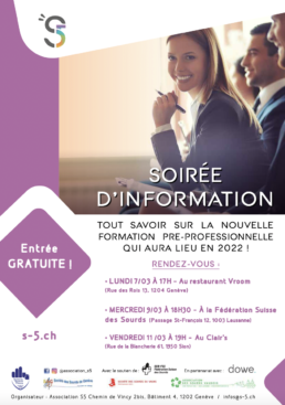 Venez découvrir la formation Parcours Objectif Emploi organisée par S5 dès septembre 2022. A cette occasion, Steve Mateus, viendra vous présenter la formation, ses objectifs, les sujets abordés, le public visé, les résultats attendus… Parlez-en autour de vous, diffusez l’information et venez nombreux ! Cette formation est une grande chance pour les sourds de Suisse et il ne faut pas passer à côté !